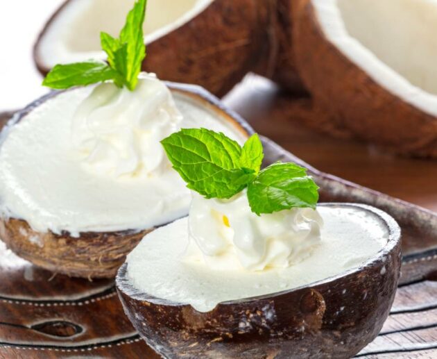 Dégustez ce délicieux sorbet coco exotique ! Mélangez le lait de coco congelé avec des arômes et des épices. Congelez pendant 4 heures, en remuant